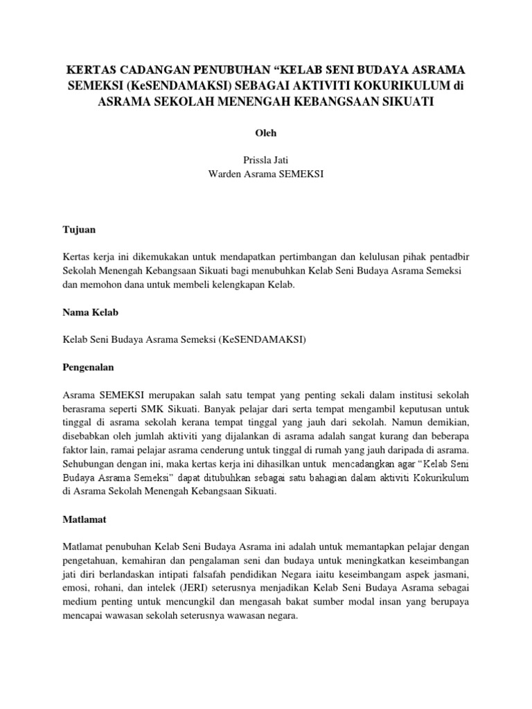 Related : Contoh Kertas Kerja Penubuhan Persatuan Di Sekolah Pdf / Contoh kertas kerja penubuhan persatuan..