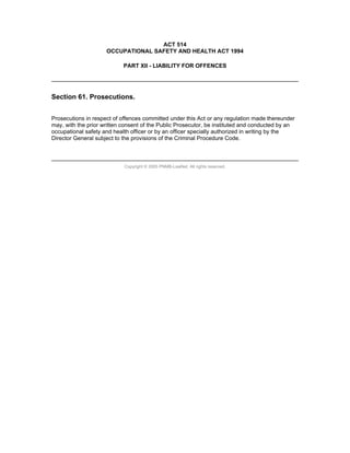 Occupational Health And Safety Act Malaysia - Department of labor, which sets and enforces workplace health the act also states each employee shall comply with occupational safety and health standards and all rules, regulations, and orders issued pursuant.