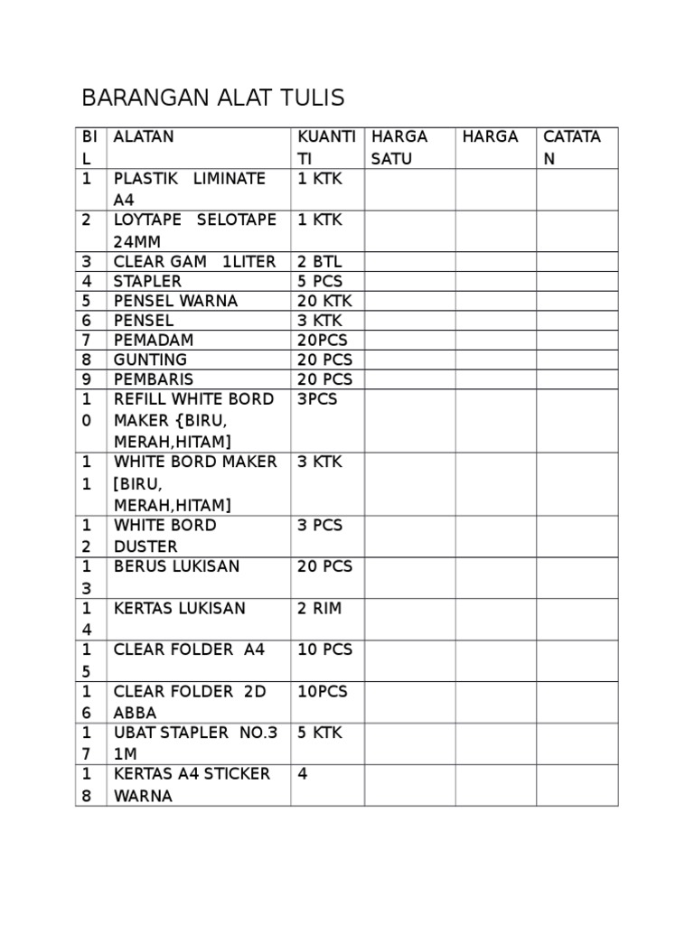 Senarai Alat Tulis Pejabat : Penulisan singkatan di bagian definisi seperti misalnya:. Yg, dng, dl, tt, dp, dr dan lainnya ditulis lengkap, tidak seperti yang terdapat di kbbi. Lagi bingung mencari produk alat tulis yang kamu inginkan namun masih sesuai dengan. Belanja cicilan kredit 0%, promo murah & pengiriman cepat. Sebagai pengeluar global bekalan permainan, alat tulis plastik dan bahan pembungkusan. Senarai peribahasa kerjasama dan perpaduan di malaysia.
