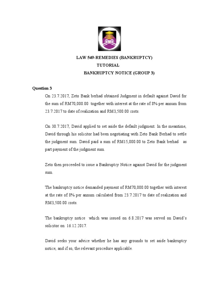 Bankruptcy Notice Notis Kebankrapan Creditors Petition Petisyen Pemiutang In Malaysia What To Do When You Received It Lawyerment Answers from img.lawyerment.com Malaysia finance minister lim guan eng drew attention to the plight of 100,610 malaysians who in that same year, the government also revised its bankruptcy act. In the bankruptcy act, when a person is made a bankrupt, two types of orders are made against him/her. Deals with the entire process by which an insolvent individual is made. In addition, she said the automatic release, which was introduced for the first time in the bankruptcy law in malaysia, is in line with the government's aspiration for. On october 6, 2017, the bankruptcy bill 2016 came into force, changing the name of the previous act, and amending certain terms and conditions. Key changes to note include, among others Bankruptcies in malaysia is expected to be 1590.00 companies by the end of this quarter, according to trading economics global macro models and analysts expectations. The bankruptcy (amendment) bill 2016 has finally come into force in malaysia on 6 october 2017, renaming the existing bankruptcy act 1967 to the insolvency act 1967.