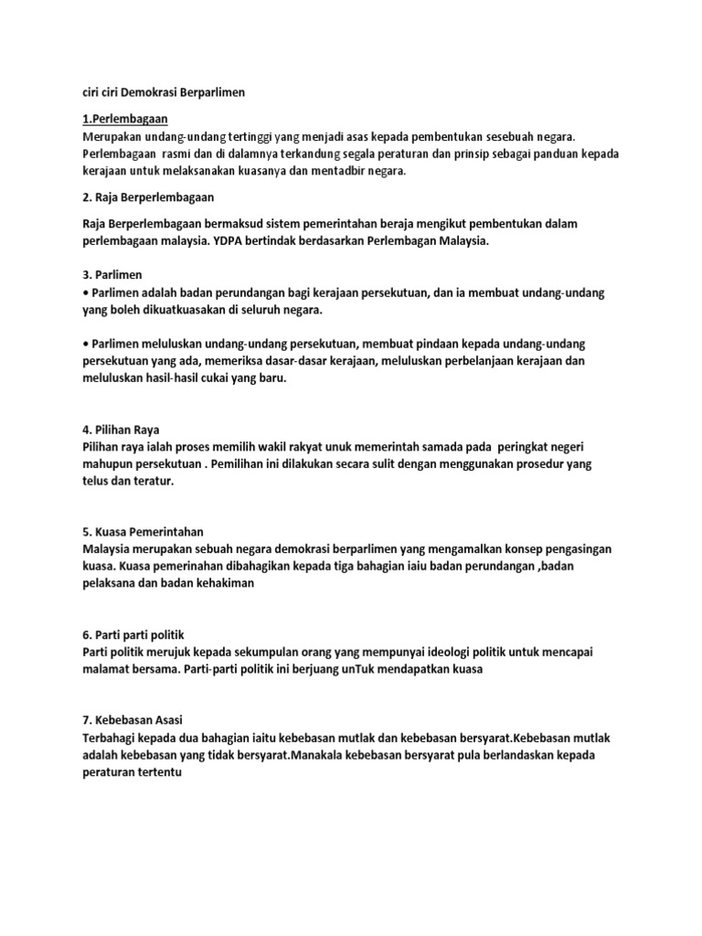 Ciri-Ciri Demokrasi Di Malaysia : Https Padletuploads Blob Core Windows Net Prod 179839477 Fa6dc700699e2194cbb10d708bd135b2 Topik 3 Sistem Pemerintahan Dan Pentadbiran Pdf - Pentadbiran negara bersifat demokrasi berparlimen, iaitu dewan rakyat dan dewan negara terletak di bawah kuasa parlimen.. Ada banyak negara di dunia yang menerapkan demokrasi. Negara demokrasi lahir daripada perjuangan berasaskan kedaulatan rakyat. Jadi dapat disimpulkan bahwa, demokrasi artinya adalah setara dengan kekuasaan rakyat. Beberapa sistem monarki konstitusional mengikuti keturunan; Demokrasi berasal dari bahasa yunani (demokratia) yang memiliki arti kekuasaan rakyat.
